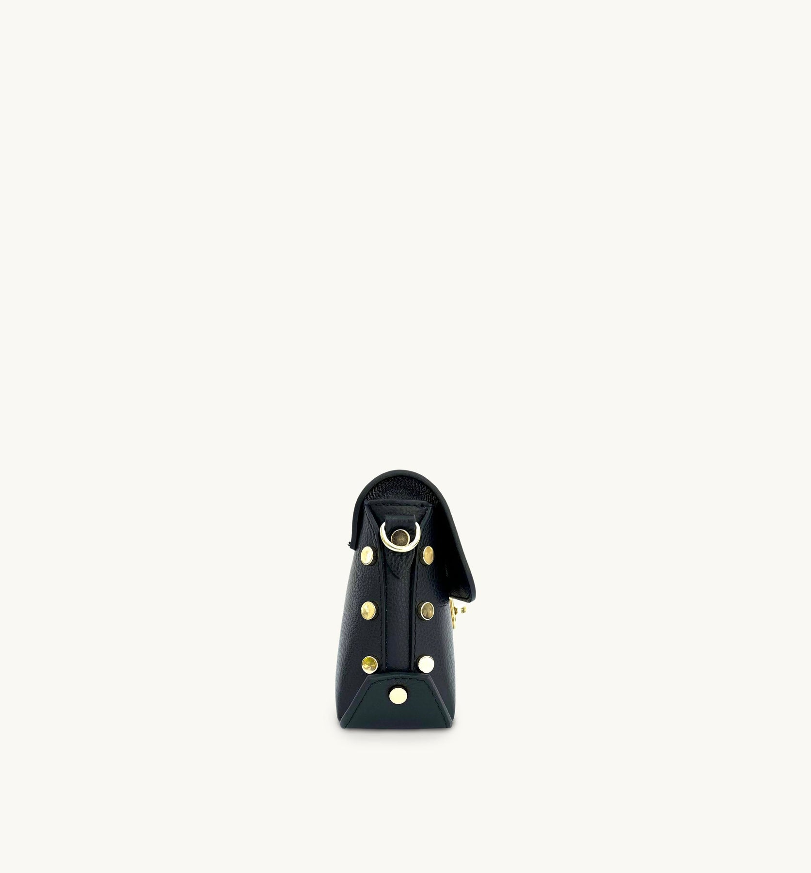 Embellished with stylish stud detailing on the sides of the handbag. Designed with a practical zipped interior pocket.