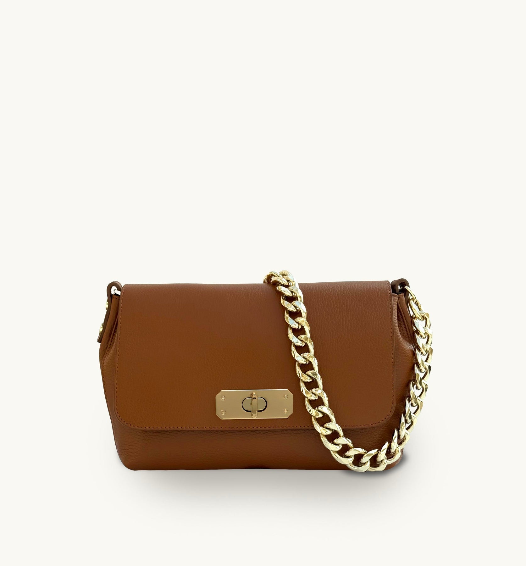 Crafted in Italy from luxurious grained pebble leather, the Maisie Maxi Bag is fully lined and showcases iconic gold detailing, complete with a sophisticated twist lock clasp.