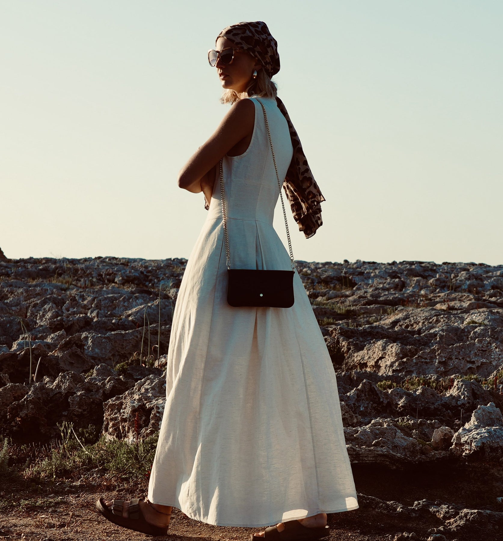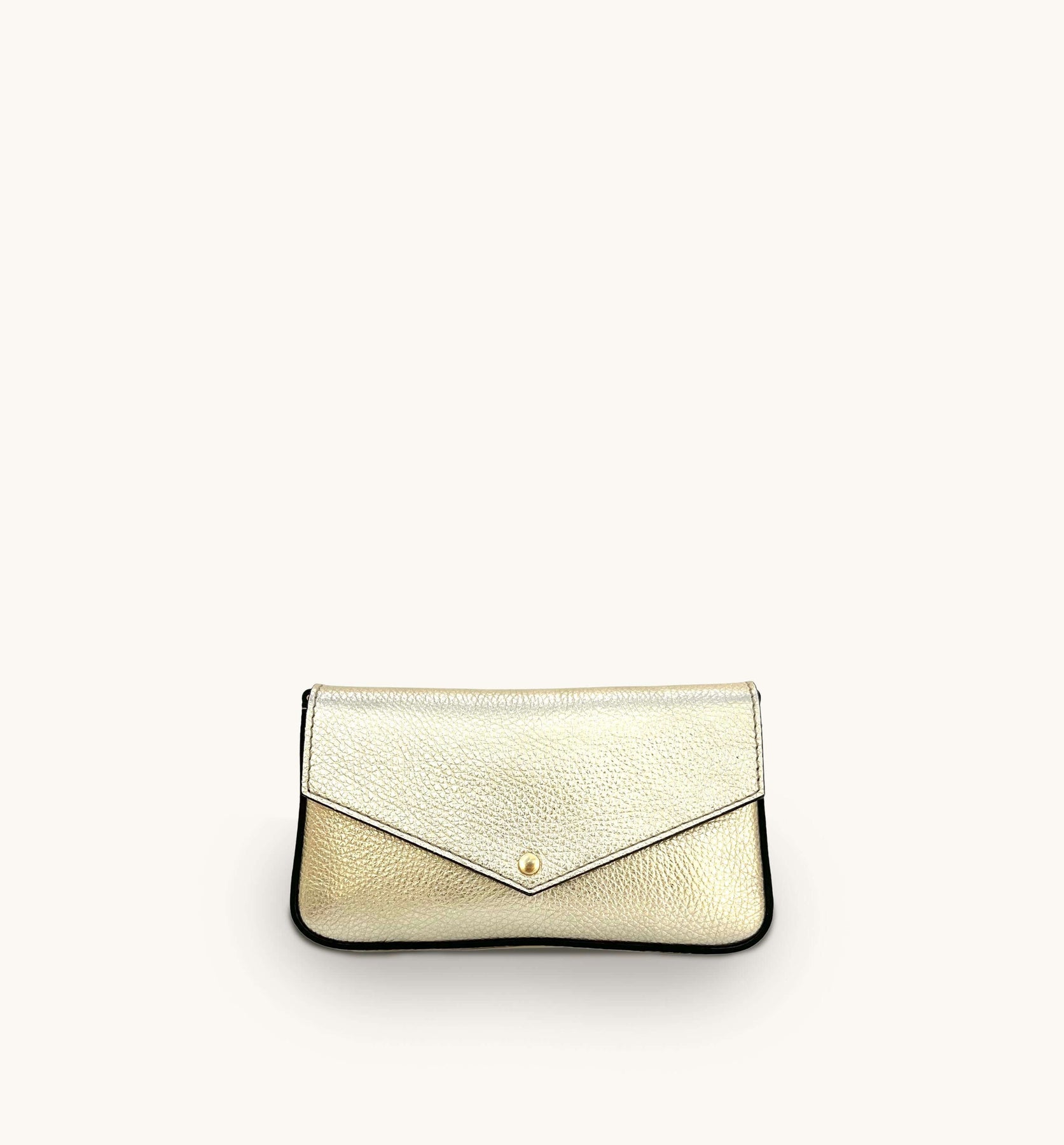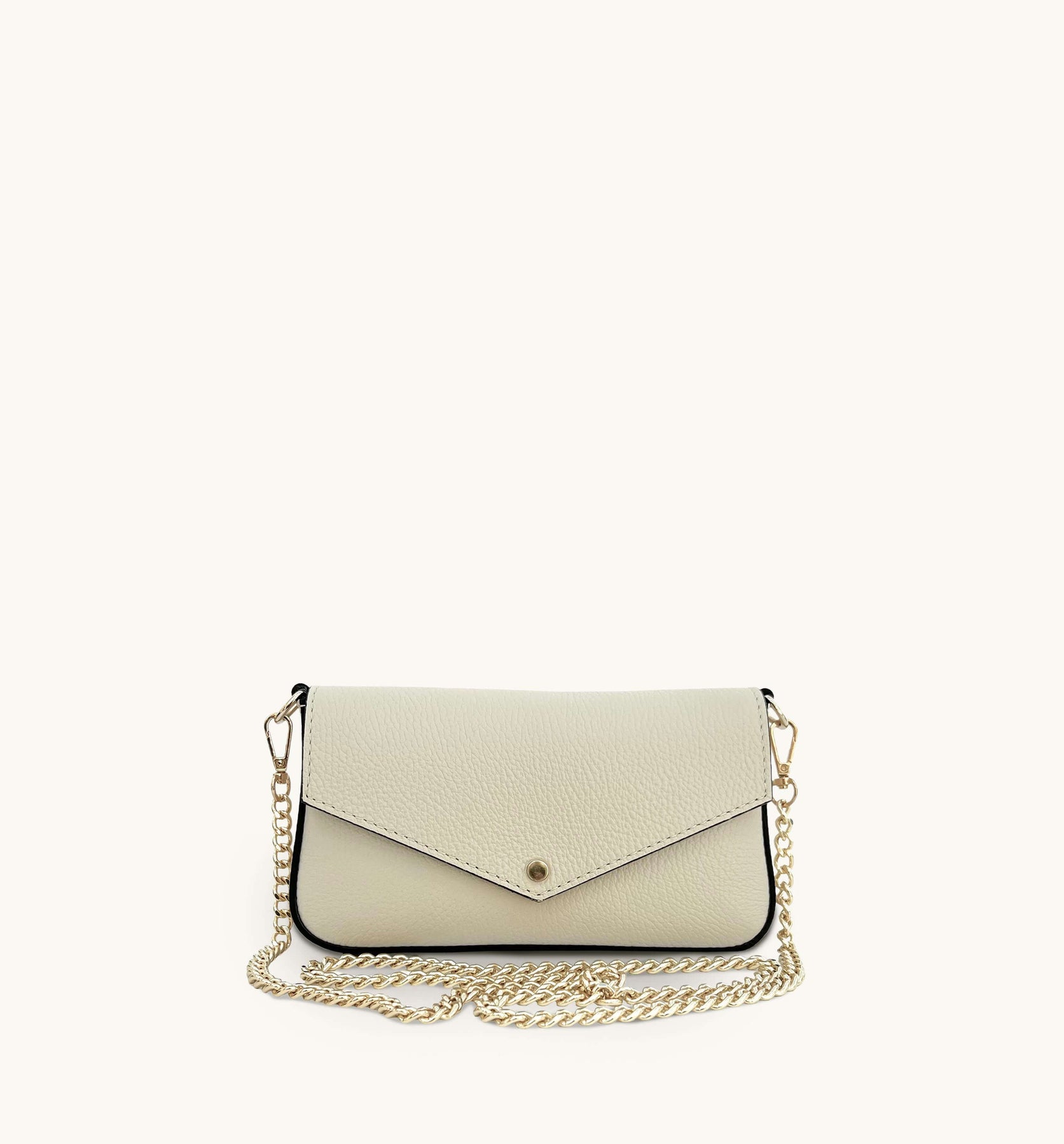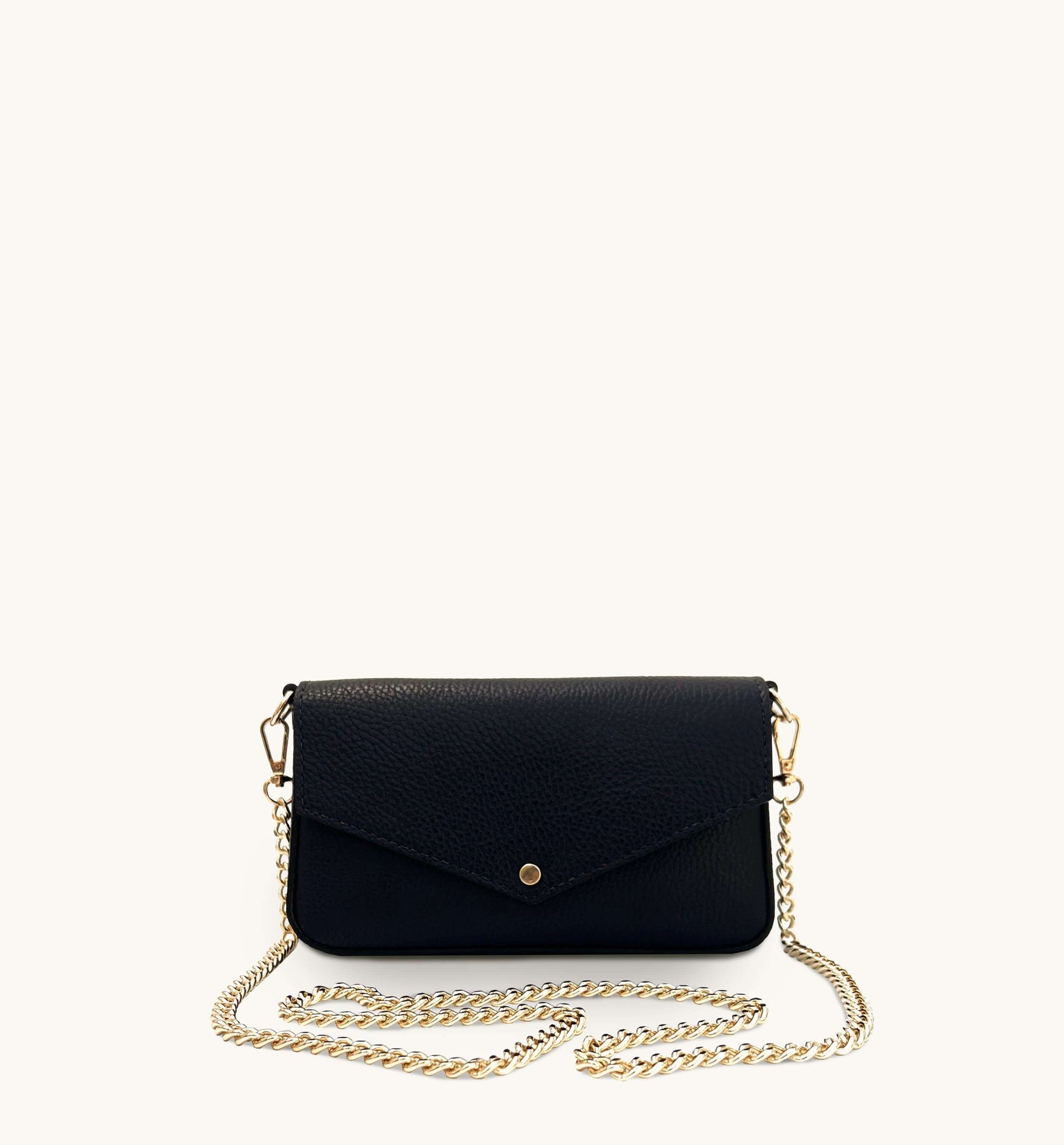Delivered in a branded dust bag. It comes with a leather shoulder strap and gold chain crossbody strap or, remove them both to carry yours as a clutch.