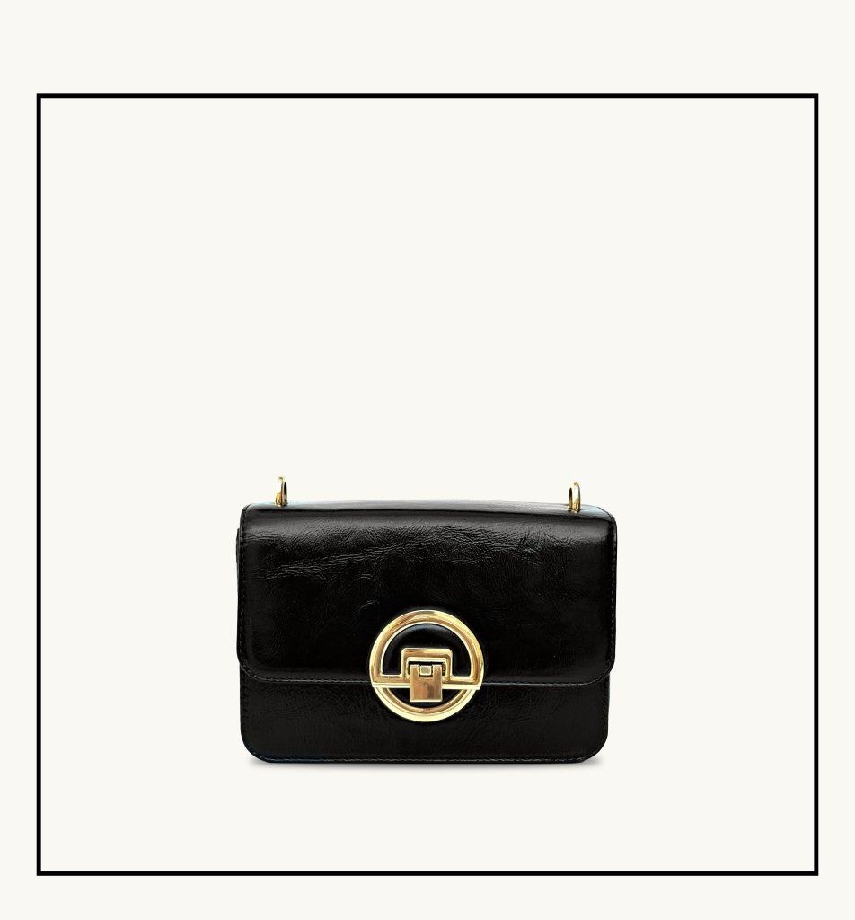 The Tilly Bag in crinkle patent captures the essence of timeless craftsmanship with a clean, structured silhouette and a nod to classic British design. Effortlessly elegant, it features a sleek front flap secured by a statement gold clasp, while the smooth leather strap adds a polished finish.
