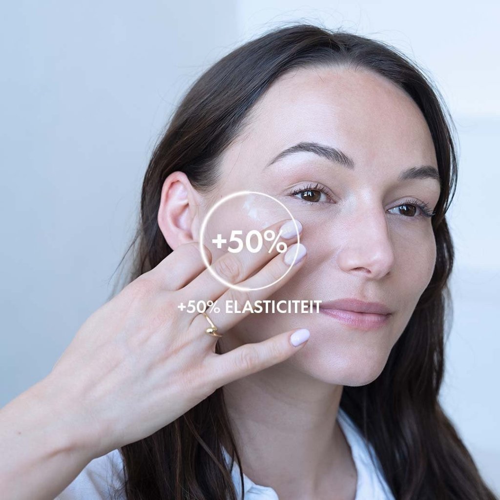 Gently tap a small amount around the eye contour using your ring finger until fully absorbed.