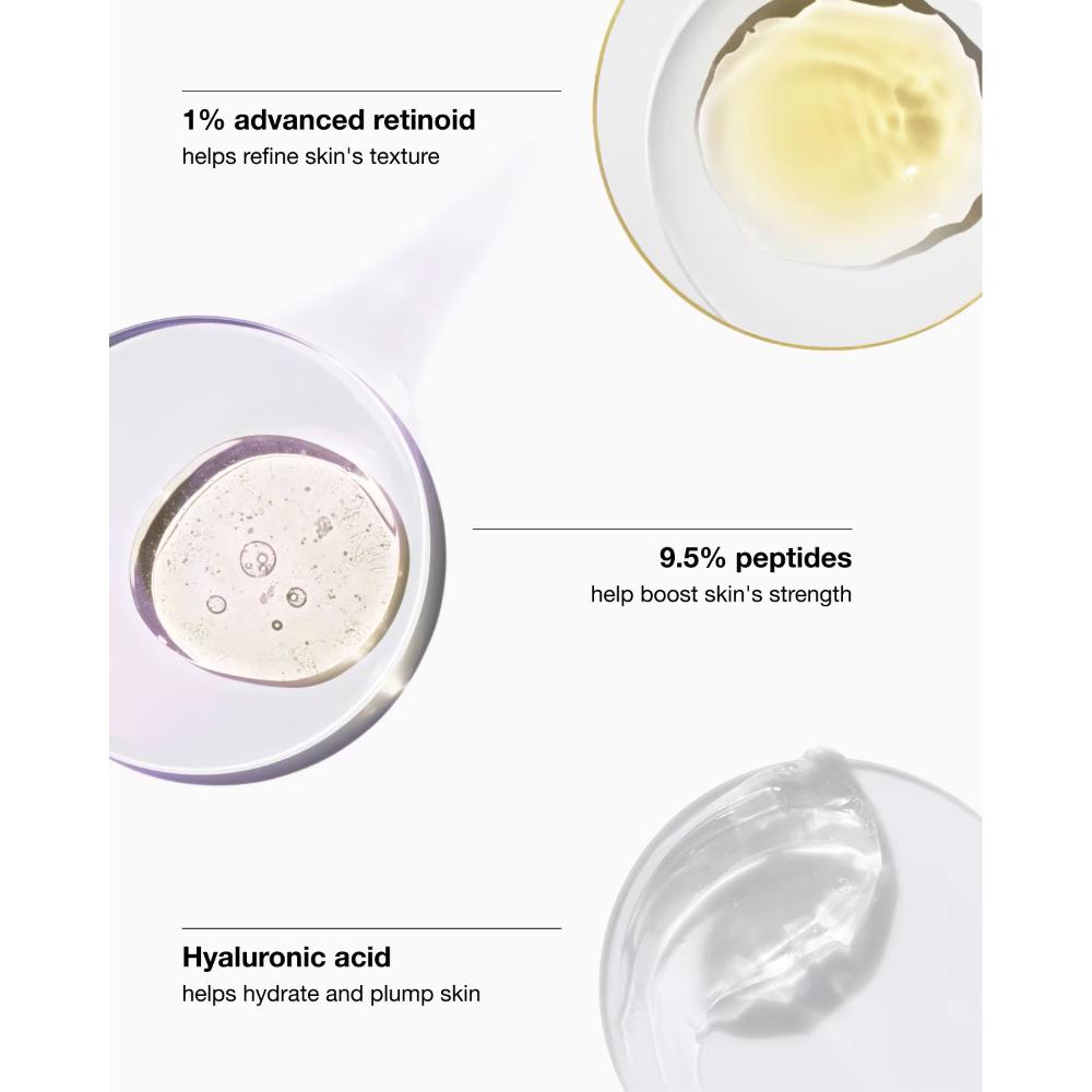 The inclusion of next-generation retinoid helps accelerate skin renewal while improving skin texture and radiance. Unlike traditional retinol that can sometimes irritate, this modern retinoid is designed to be effective yet gentle, making the serum suitable for a wider range of skin types. It supports faster turnover of dull, tired skin, helping reveal fresher, smoother, more even-toned skin.