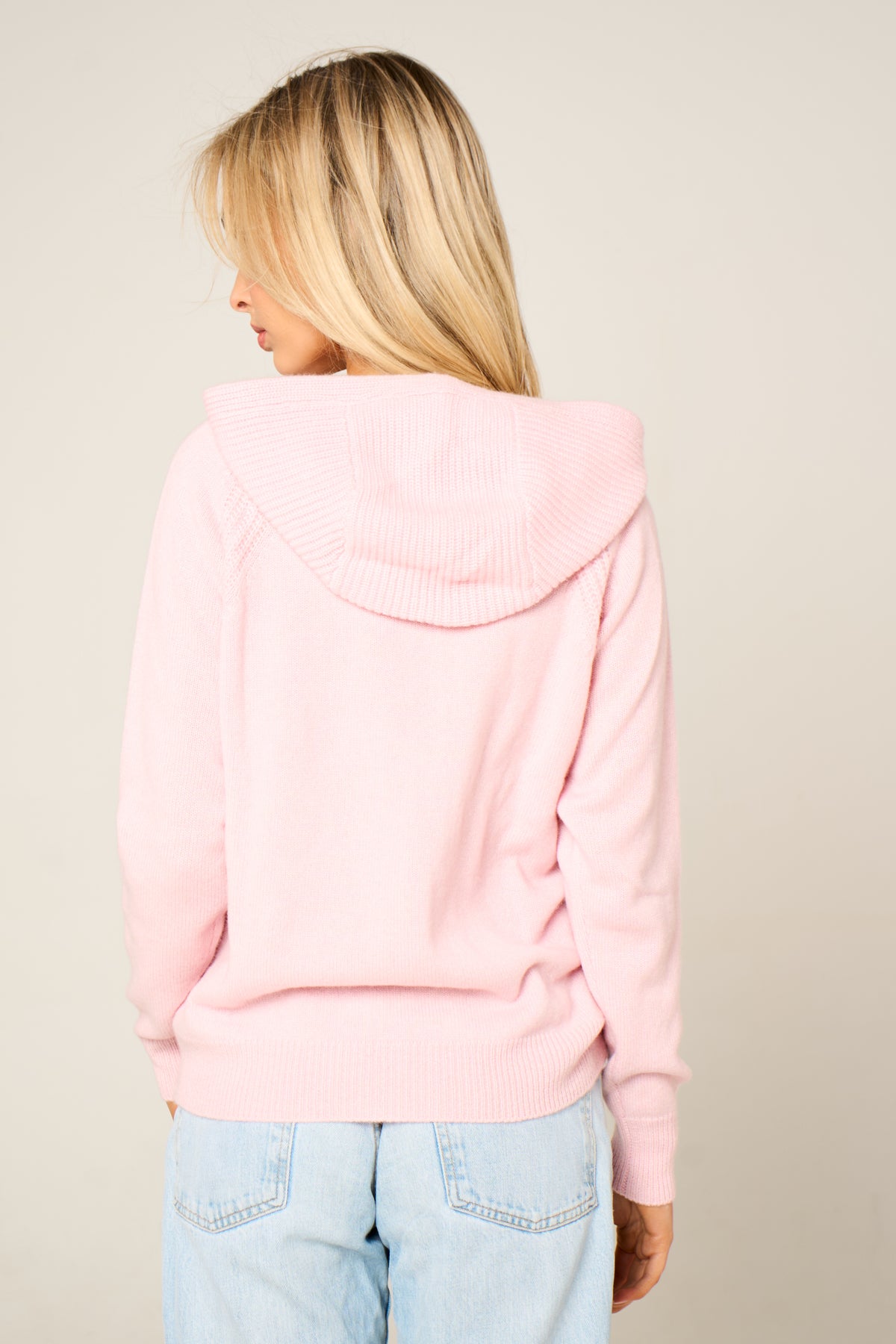 The soft hue evokes calm coastal charm, while the sumptuous cashmere texture provides unmatched warmth and comfort. A double zip closure, ribbed trims, and spacious front pockets combine practicality with refined detail — ideal for layering on cool days or travel comfort in style.